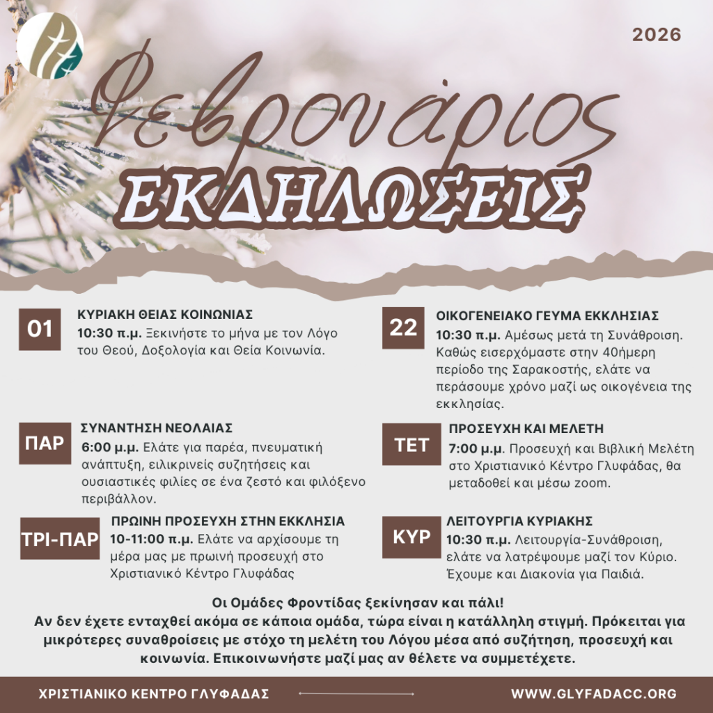 Χριστιανικό Κέντρο Γλυφάδας – Εκδηλώσεις Φεβρουαρίου 2026